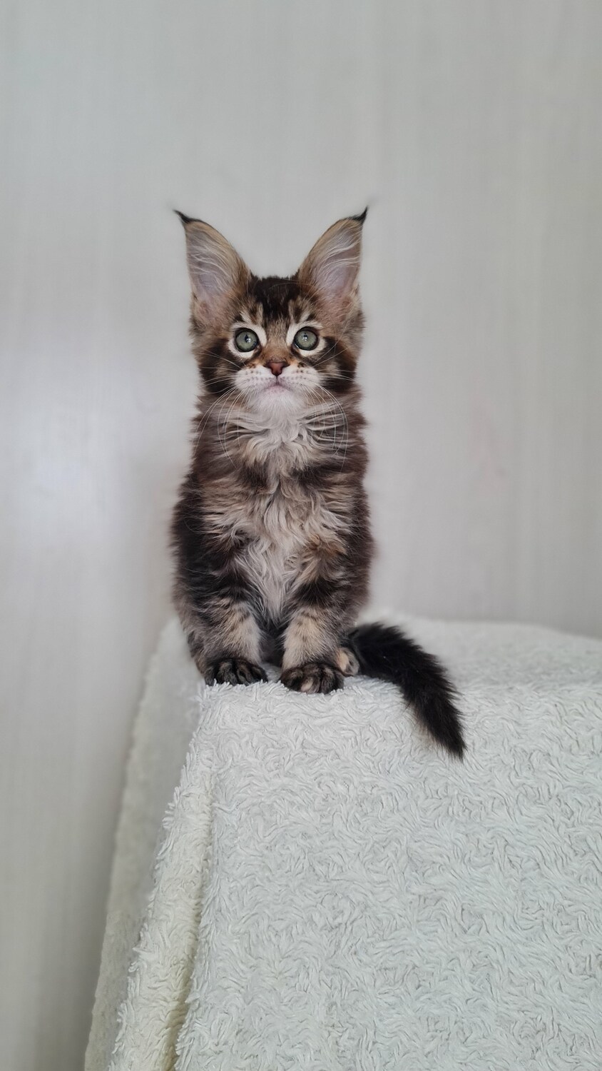 красавица очень похожа на маму. Уши, кисти, хвост все при ней,